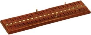 Cribbage Boards Cribbage boards are traditional scoring devices often used for playing domino games. They were originally used for playing the old playing-card game, Cribbage, but have since become commonly used for some domino games like Double Draw, Sedma and Seven Rocks. There a few different types of cribbage board, but the one typically used for domino games is described here. Usually made from wood, they are just a 8- to 12-inch long rectangular block with holes drilled into one side, used with small pegs (usually metal) that players move around the board by pushing them into the holes to indicate their score/progress in a game. The moving of the pegs is known as "pegging" and the actual pegs are sometimes known as "spilikins". The holes are often grouped into fives which are in turn set in rows of 30 which are sometimes referred to as "streets".