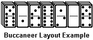 BuccaneerA solitaire game for one player, played with a Western Double-Six domino set. Play: The dominoes are shuffled, facedown, and then laid out