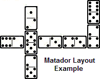 MatadorAlso known as Seven-Up, All Sevens, Russian Cross, Russian Dominoes, and Master Dominoes. A simple variation of the standard block-type domino game, played by two to four players using a Double-Six domino set, and a score-sheet. Play: The dominoes are shuffled, facedown, then each player draws seven tiles that only they can look at. Any remaining dominoes are set aside and not used in further play.