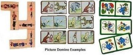 Dominoes Without Spots Learn about some different and novelty domino sets commercially available with markings other than the usual round spotted suit values. There are some Western domino sets marked without the usual spots (or pips). These domino tiles will still be double-squares with a length twice as long as they are wide like standard Western spotted dominoes, but will have different markings on the tiles. For example, there are some domino sets marked with numbered numerals instead of spots. This apparently makes it easier to match different suits. The numerals are often coloured differently to make matching suits even more simple and obvious. Numerals instead of spots are more common with the larger domino sets, like Double-Nines, Double-Twelves, Double-Fifteens, and Double-Eighteens. These dominoes can be used in exactly the same way as the standard Western spotted dominoes and allow the full range of domino games to be played. Some other domino sets are marked with pictures of things like different animals, cartoon characters, flowers, or other pop images, instead of spots or numbers. These domino-sets are manufactured and marketed for young children who may find it easier to match the different pictured suits. However, these domino sets prevent the playing of some domino games requiring numbered suits for scoring. They are often made from thick paper-card but not always.